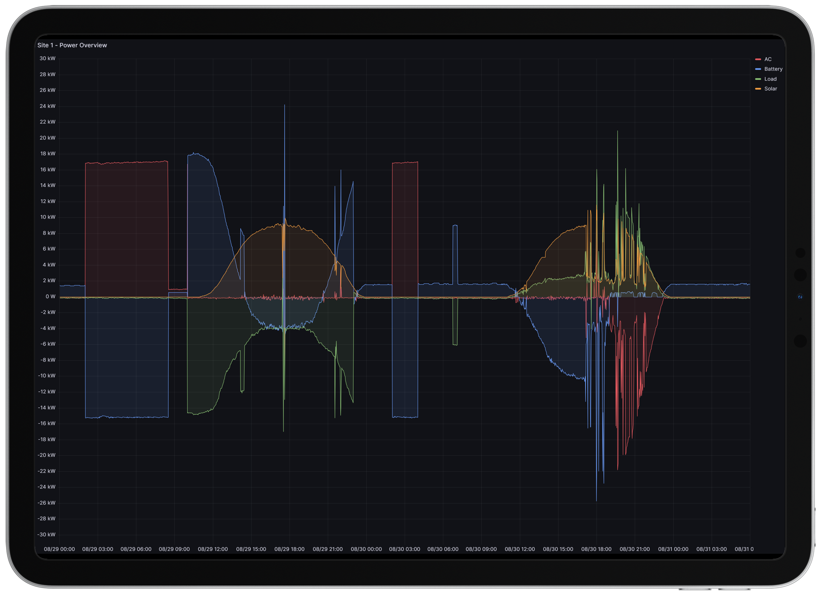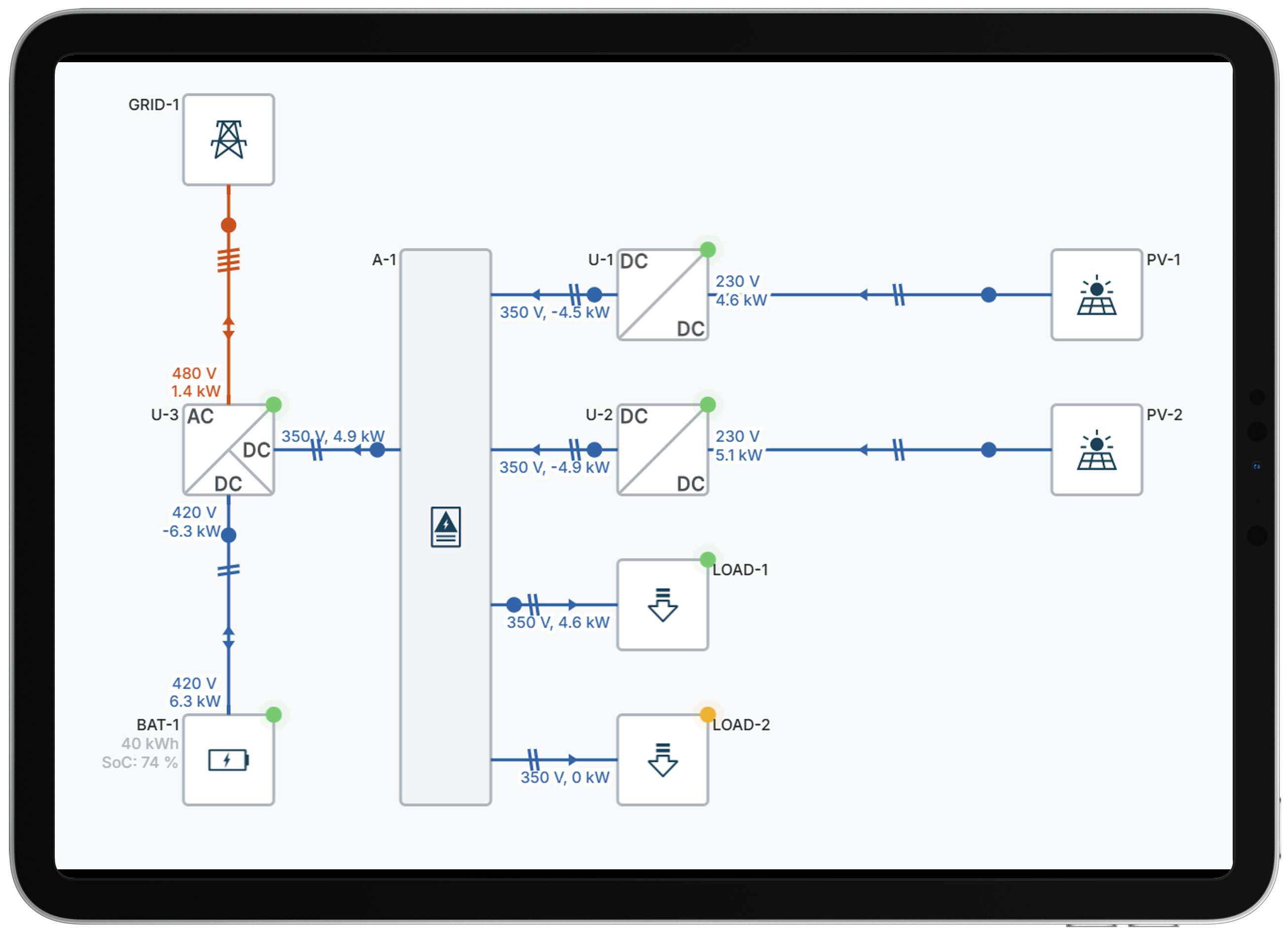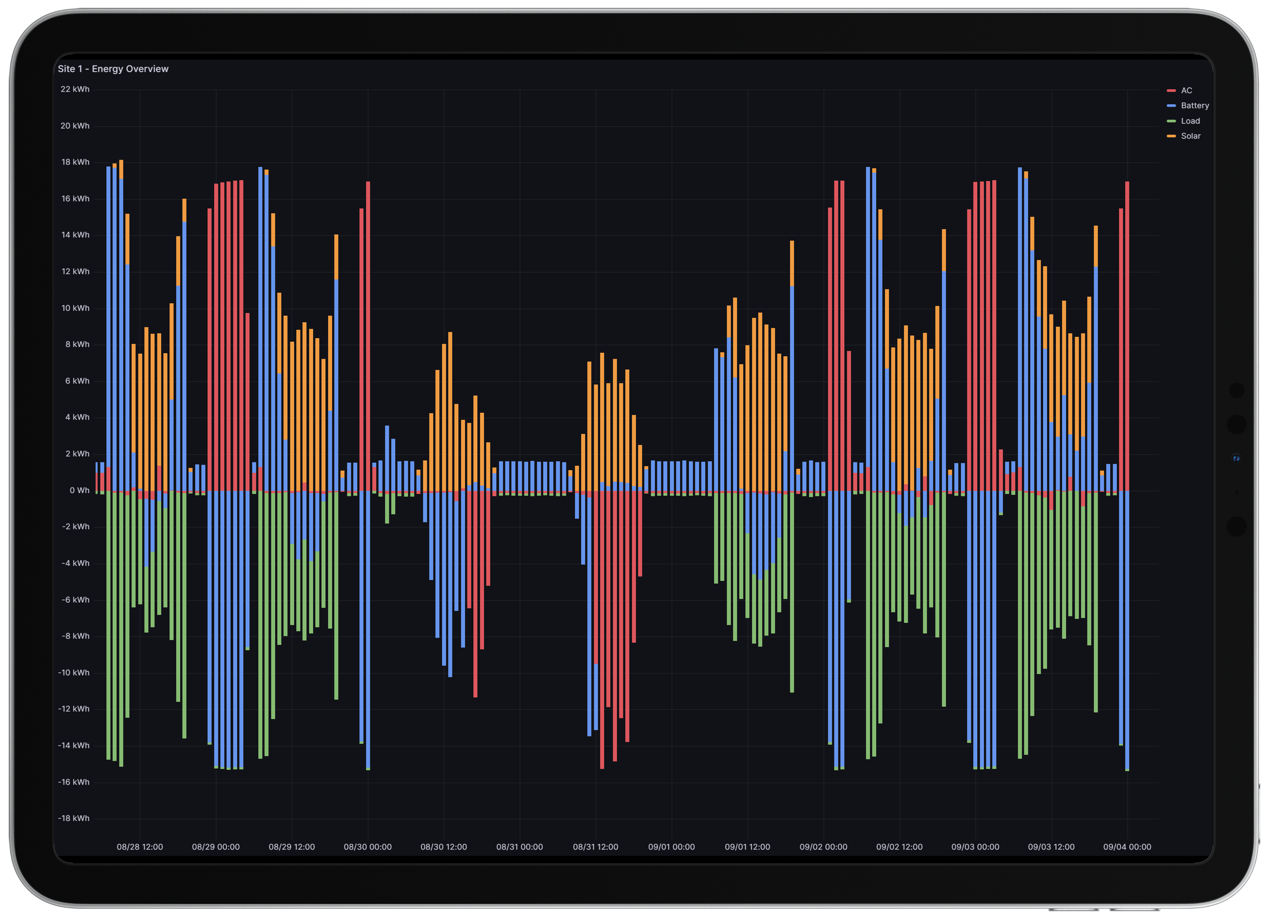 Track power and energy flow with real-time data collection, stored in a database for troubleshooting and historical analysis.